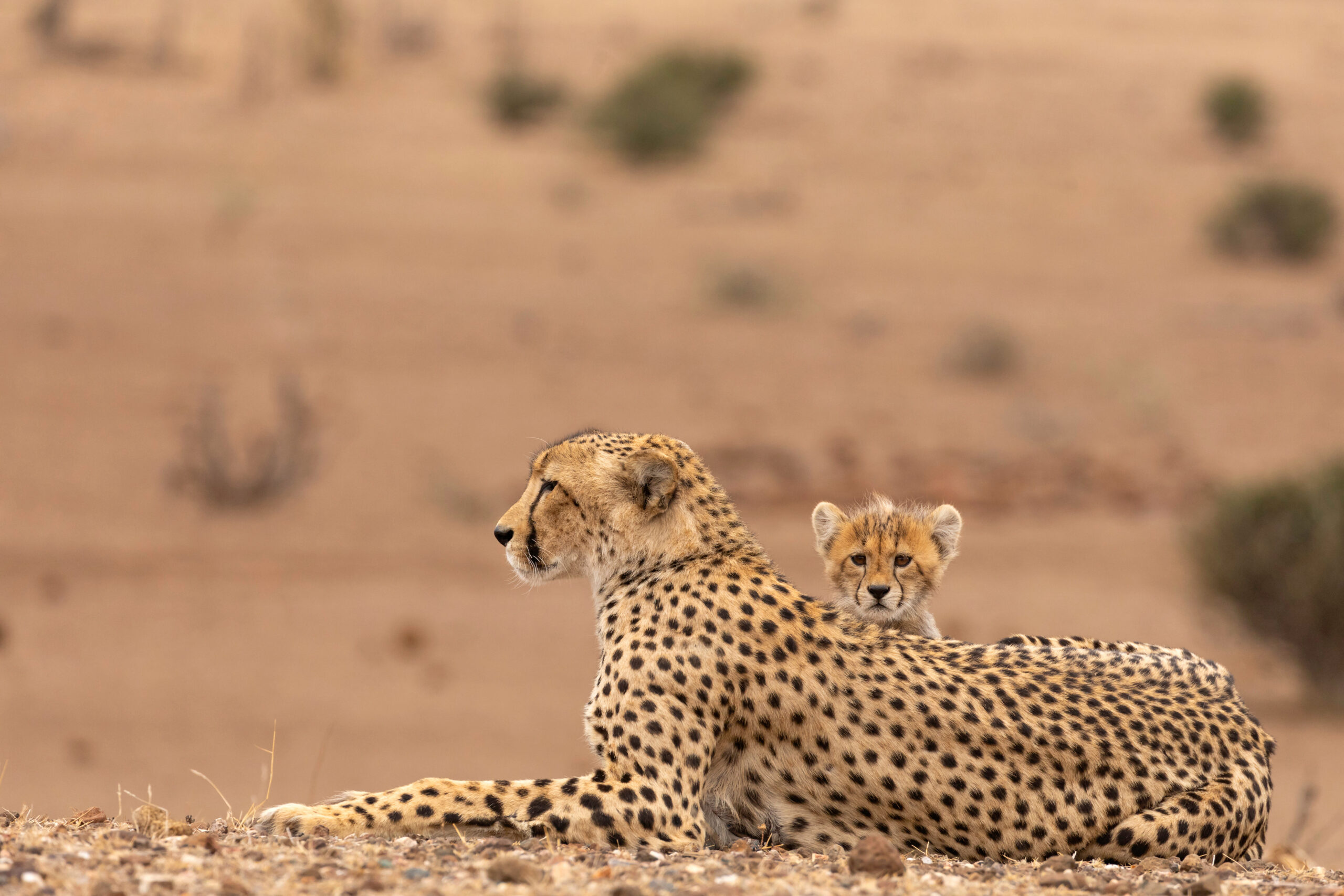 The cheetah, a swift predator of Namibia’s savannas, is built for speed, reaching over 100 km/h to hunt antelope like springbok and impala. Slim and longlegged, it stands out with round spots and black tear lines under its eyes.