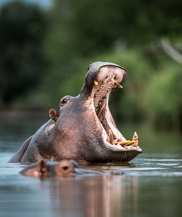 The hippopotamus, a massive and semi-aquatic mammal of Africa’s rivers and lakes, is known for its immense size and territorial nature. Spending much of their day submerged in water, hippos emerge at night to graze on grasses, showcasing their surprising agility on land.